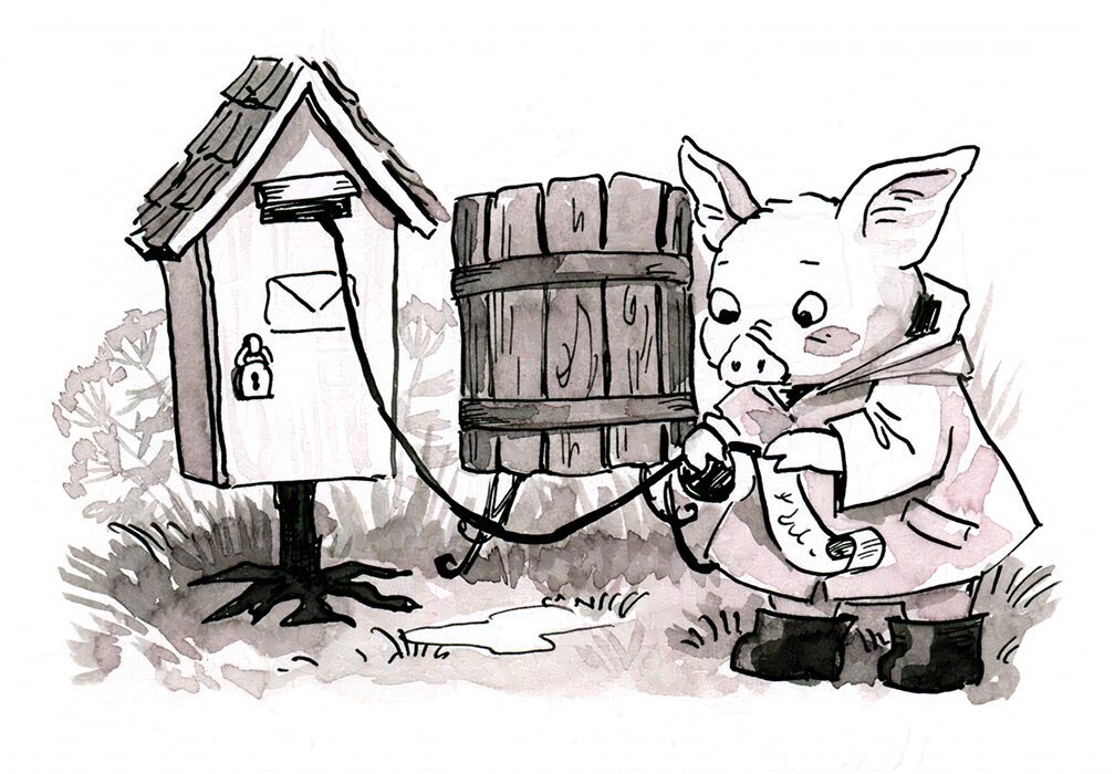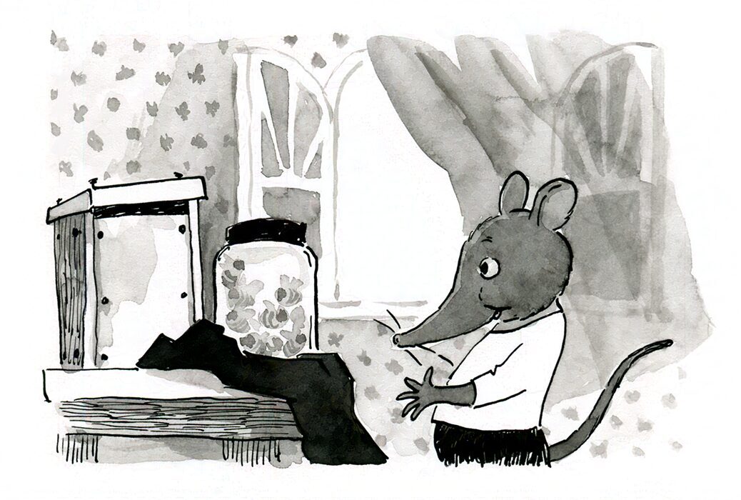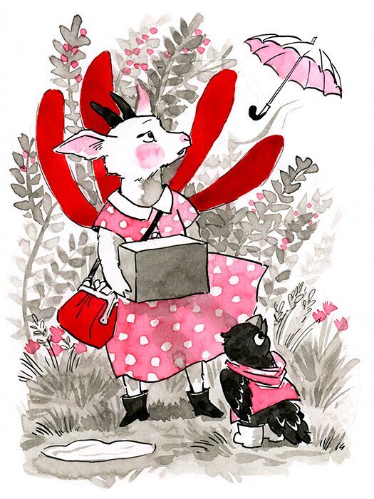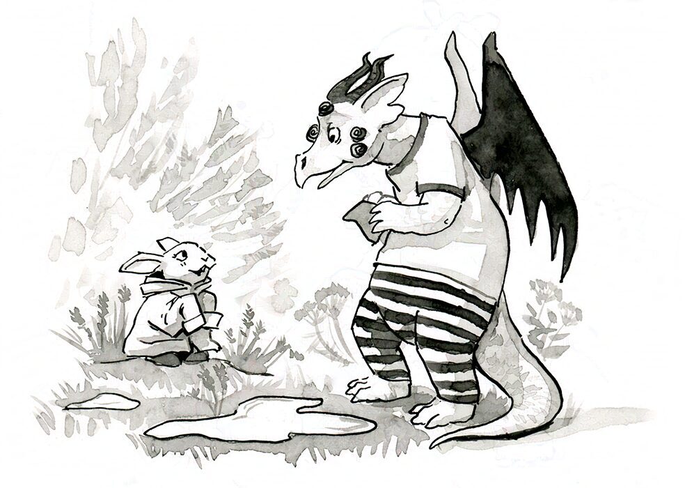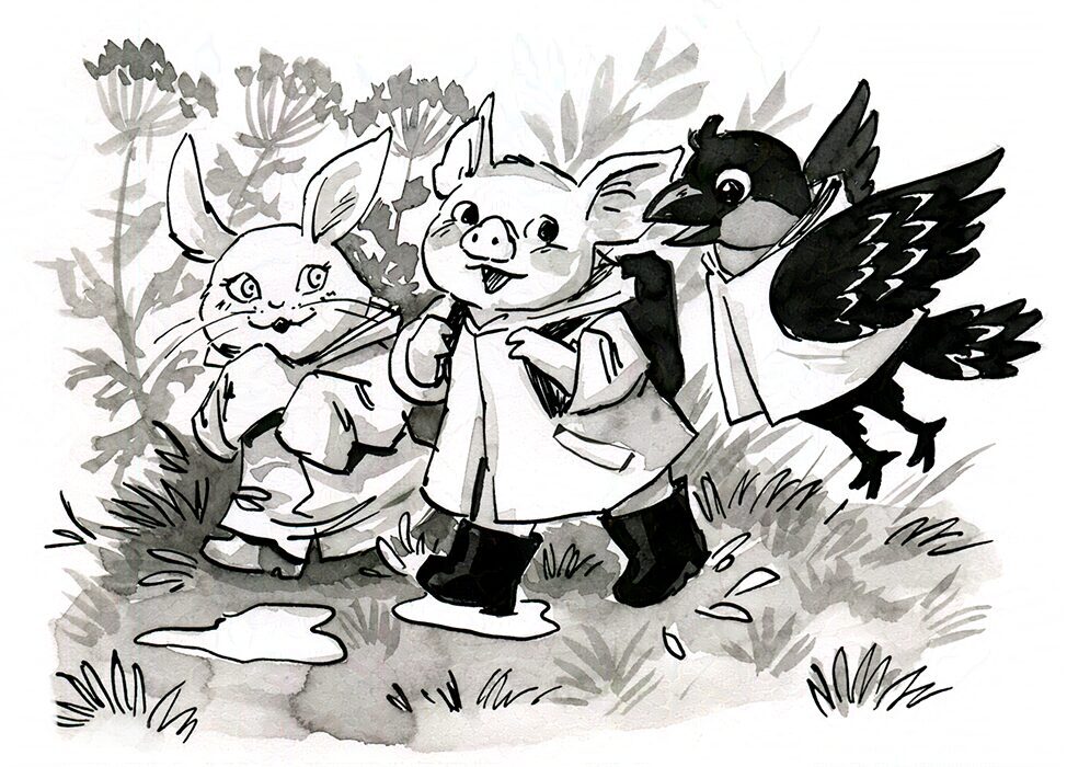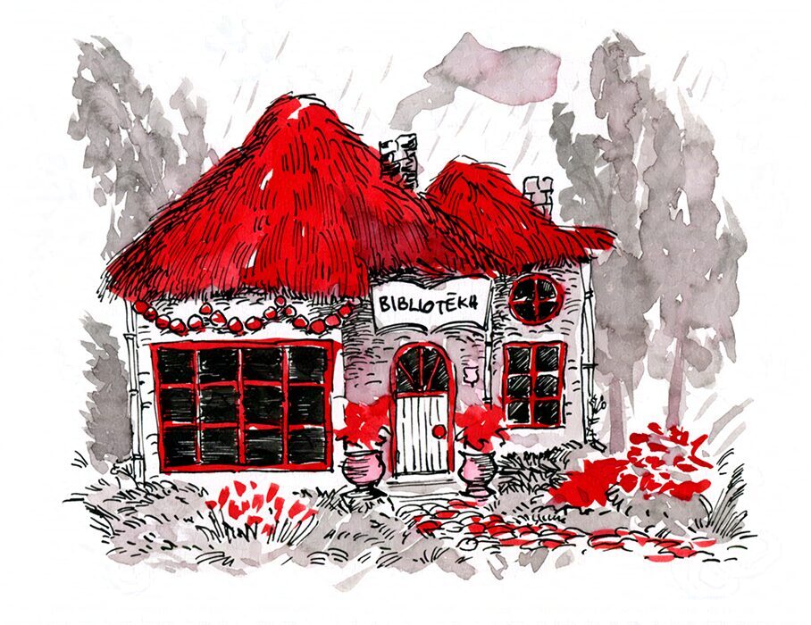 Illustrations in black and red ink for Aija Lisovska's chapter book "Dullā Diena Dundurzālē", published by ZvaigzneABC, 2022