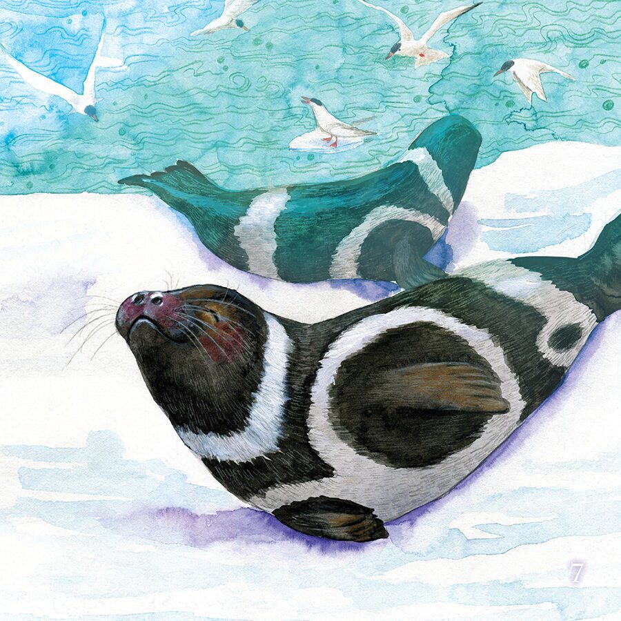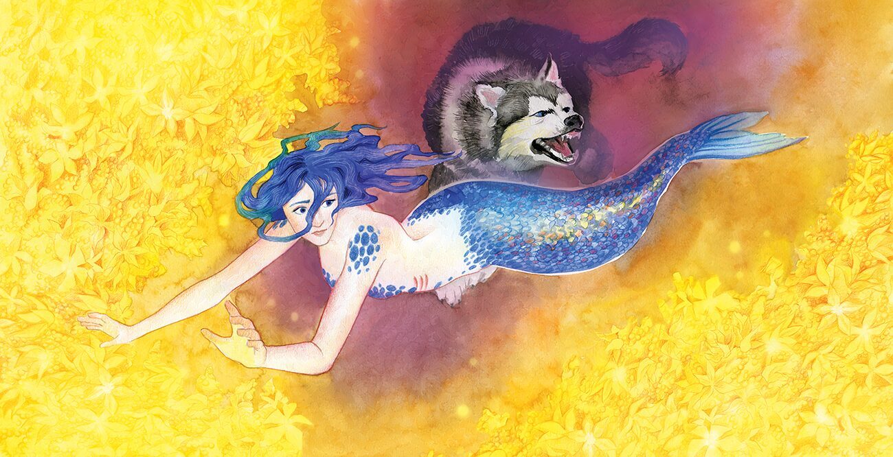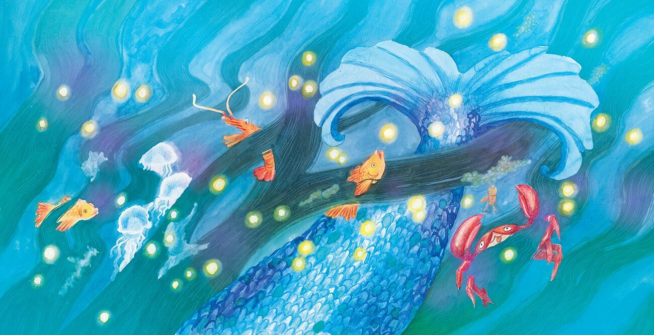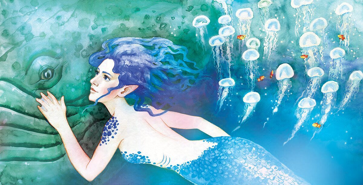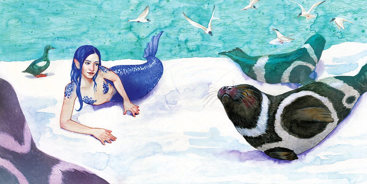 Once, when I had an exhibition at a children's hospital library, I held a contest for the little patients and their parents. At the time my first picture book was published and I felt like creating another one, just with a special purpose this time. Patients and parents of patients sent me their letters that told about their stories. I chose story of Zane Kurina and thinking about her created a story of my own that tells about mermaids, how they appear and how to become human again. This story incorporates inuit mythology and goddess Sedna.